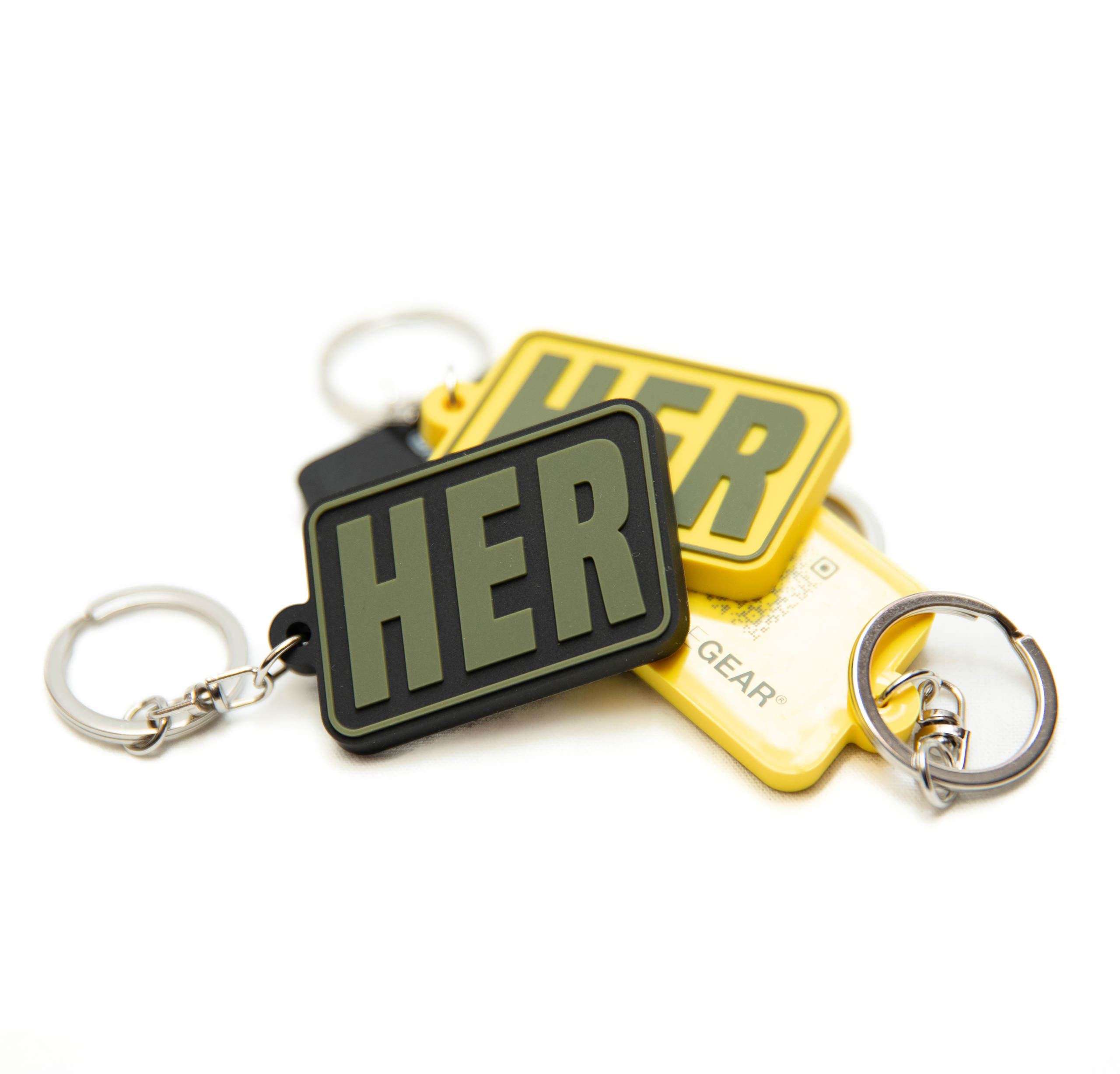HER CULEGEARのロゴをそのまま立体的に再現した、ラバー素材のキーホルダー。